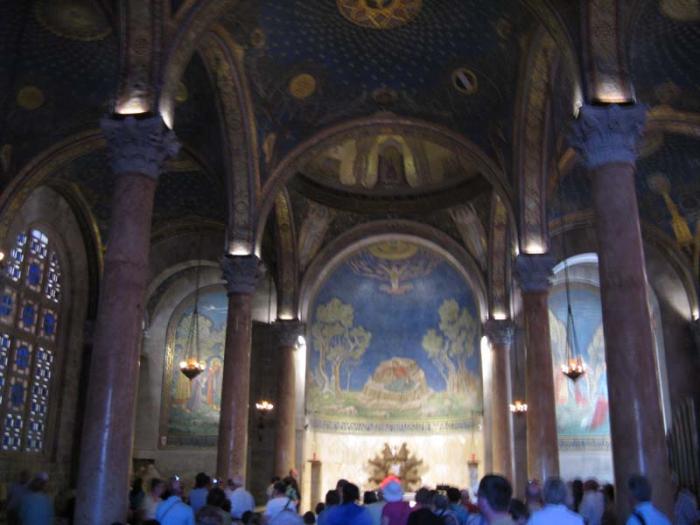 Мозаика над алтарем изображает «Гефсиманское моление».