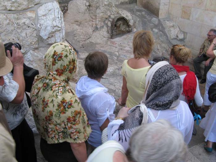 В этом саду находится камень, на котором Иисус молился перед арестом и предательством Иуды. Ровная толпа людей еле двигалась к этому камню, чтобы прикоснуться или помолиться на нем.