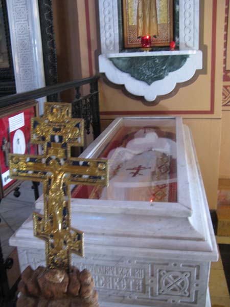 В самой церкви шел ремонт, но нам разрешили пройти. Иконостас и боковые стены украшены иконами работ Верещагина и Иванова.