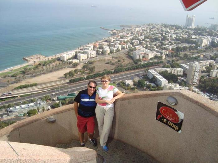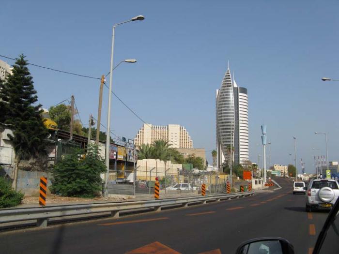 И в отличии от Эйлата – прекрасный нежный песочек и волны. В Эйлате волн не было совсем. Вот уж мы накупались! Девчонки из Хайфы позвонили, спросили, когда мы будем у них. Мы, конечно, просчитались, пообещав вскоре приехать. Пока дошли домой, пока позавтракали, пока доехали. В Хайфе нас встретили гром и молнии. Очень девочки обиделись, прождали нас часа два. Простите нас! Действительно, виноваты. Подхватили их на хвост и покатили к Бахайским садам. Город показался интересным. Современные небоскребы соседствуют со старыми зданиями.