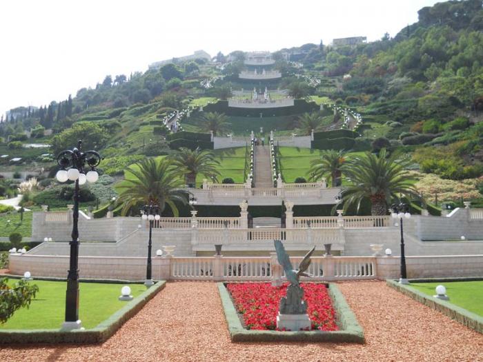 Так и сделали. Накупались и вернулись. Уже собралось довольно много народа. Нас разделили на две группы человек по 40 в каждой, прочитали лекцию о поведении и повели. Идти можно только с экскурсоводом, вправо-влево – «расстрел». Бахайский храм и сад около него считается одной из самых известных достопримечательностей Хайфы. Члены религиозной секты бахаев считают что Христос, Мухаммед, Моисей и Будда были посланы Богом в разные части света для пророчества единой философии. Если честно, то что-то в этом есть. Очень уж в святых местах Израиля, особенно в Иерусалиме, все переплетено и находится так рядом, как-будто и создано все было вместе. Но вместо того, чтобы понять, что Бог един, все пытаются доказать свое главенство.