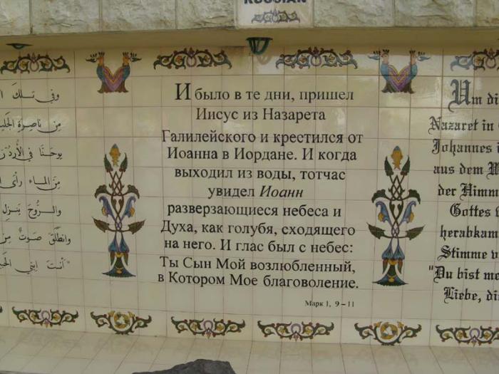 Мы приехали, на месте оборудована большая парковка. При входе установлены щиты с изречениями из Ветхого завета на разных языках.