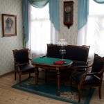 Наша экскурсия в Александров началась с дома купца Первушина. Это достаточно большой восстановленный особняк в центре Александрова на границе городского парка. Принадлежал купцу II гильдии Алексею Михайловичу Первушину (1829 – 1902 гг.) и являлся центром общения деловой и творческой элиты того времени. Экскурсовод рассказала нам о семье Первушиных, о жизни купцов, очень неплохо живописала быт того времени. Весьма интересная экскурсия. Юльке особенно приглянулся сундучок со сказками сейфовый сундук с механической сигнализацией конца XIX века.В одном из подсобных помещений особняка во дворе разместилась замечательная экспозиция “Музей рукотворного камня” ВНИИСИМС, посвященная разнообразным драгоценным, полудрагоценным и совсем уж недрагоценным камням природного и искусственного происхождения. Потрясающие, надо сказать, камешки, получил подлинное удовольствие.
