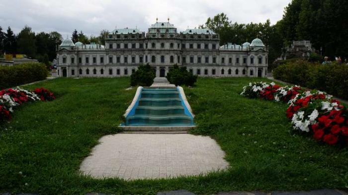 На сегодня у нас запланирован парк «Минимундус». Всего 15 км и мы на месте. Парк небольшой. Ничего грандиозного там нет, но очень зелено и красиво. Там представлены достопримечательности разных стран в уменьшенном виде, сделанные из тех же материалов, что оригиналы. России нет…