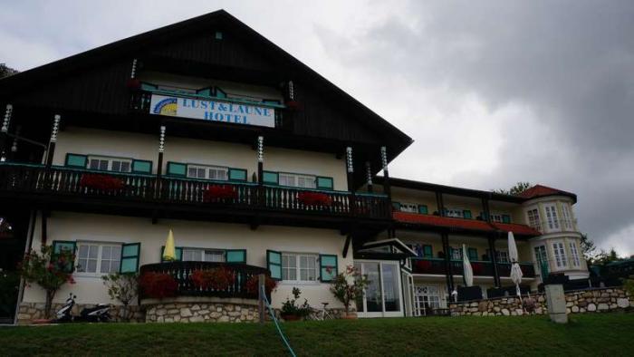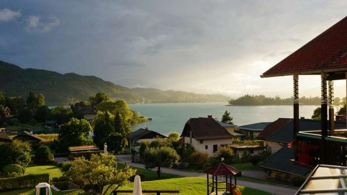 Ну теперь в Австрию! Озеро Вёртерзее я выбрала, потому что оно является одним из самых теплых в Австрии. Но нам не повезло с погодой. Было холодно и иногда шли дожди. Хотя некоторые постояльцы купались. Наши мужчины один раз тоже рискнули искупаться. Все прошло удачно и никто не заболел!