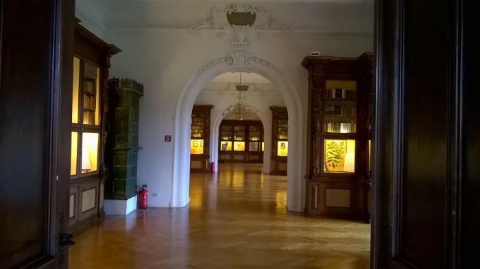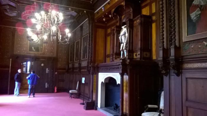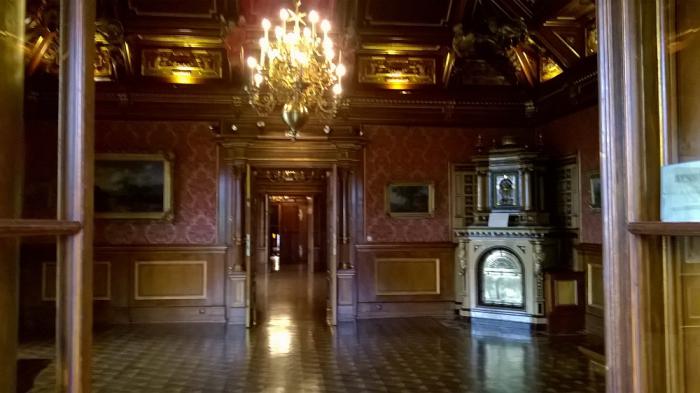 По самому замку за 6 эуро можно было бродить сколько угодно самостоятельно и фотографировать где вздумается – и ни одной бабушки с криками «не прикасаться» не бросалось под ноги. А интерьеры были тут богатейшие, потрогать очень хотелось. Конечно, потрогали – деревянная отделка порой оказывалась искуссно заменена крашеным пластиком – интерьеры замка восстанавливали после второй мировой очень кропотливо, этой работе посвящена экспозиция последних залов дворца.