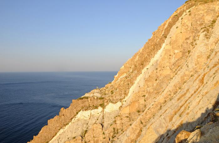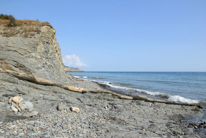 При желании можно тропинкой слегка подняться на горочку, откуда открывается неплохой обзор, и насладиться наконец уже синим морем, южным солнышком и скалистым берегом.