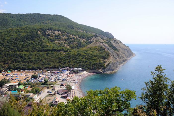 Дюрсо берет название от одноименной речки и в переводе означает четыре источника, которые её и питают. Видели мы ту речку. Делит она пляж на две части. Но какие-то неполноводные источники оказались. Совсем уж скромненькая она.