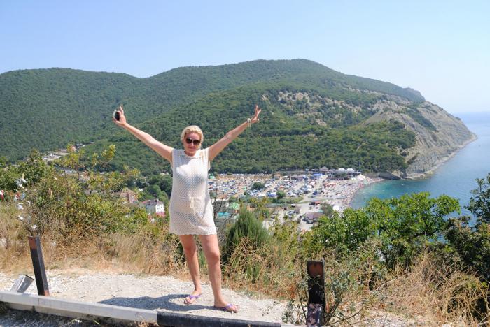 Быстро и энергично изучаем местность. Подъем, завтрак и в Абрау. Точнее в Дюрсо. Оказывается это два разных поселка. Абрау расположился на берегу одноименного озера среди гор, а Дюрсо на море. Причем от Абрау сперва приходится карабкаться серпантином к небу, а потом уже аккуратненько спускаться. И с дороги при этом открывается панорама озера с окрестностями.