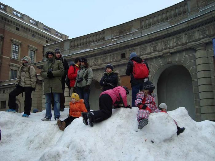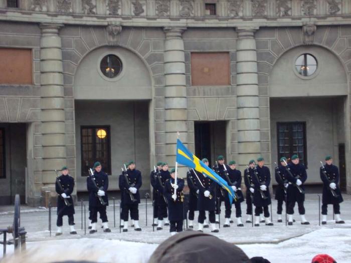 Сразу пешком по улицам Карлбергсваген и Свеаваген прошли в центр к Королевскому дворцу, так как в 12.15 начинается развод караула.