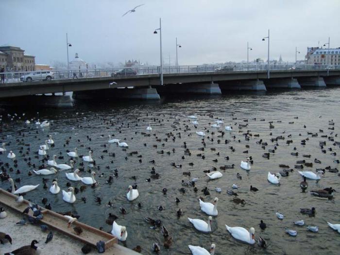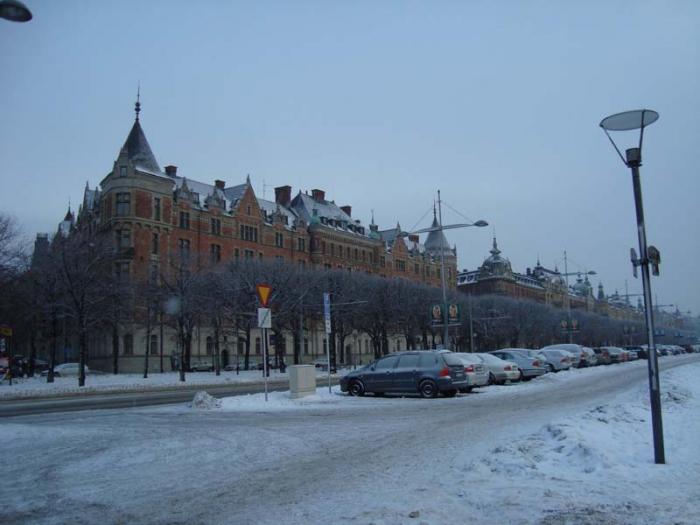 Затем мы вышли на набережную к Королевскому дворцу, прошли мимо Королевского оперного театра, мимо плавающих в ледяной воде лебедей, мимо Драматического театра и по красивой набережной Странвеген дошли до острова Юргорден.