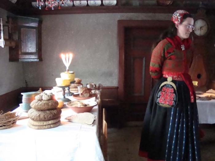 В парке собраны различные дома со всех районов Швеции всех времен от старинных до почти современных. Почти в каждом доме в национальных одеждах «жители», очаги горят, еда на столе (настоящая). И погреться можно и с тетенькой поговорить (на английском или другом языке, только на русском не говорят). День выдался морозный, ясный и было очень приятно заходить в домики.