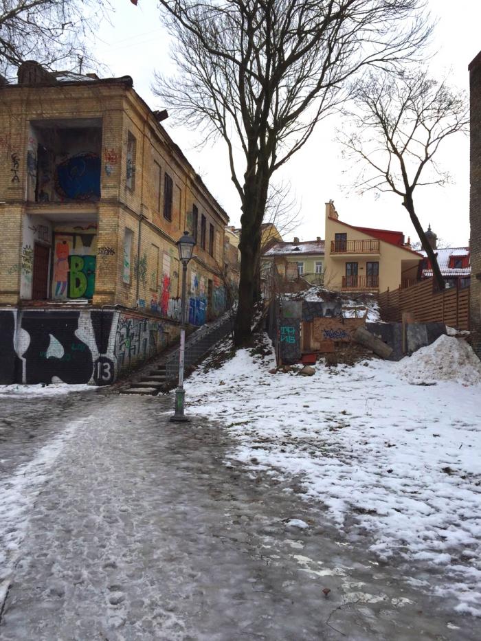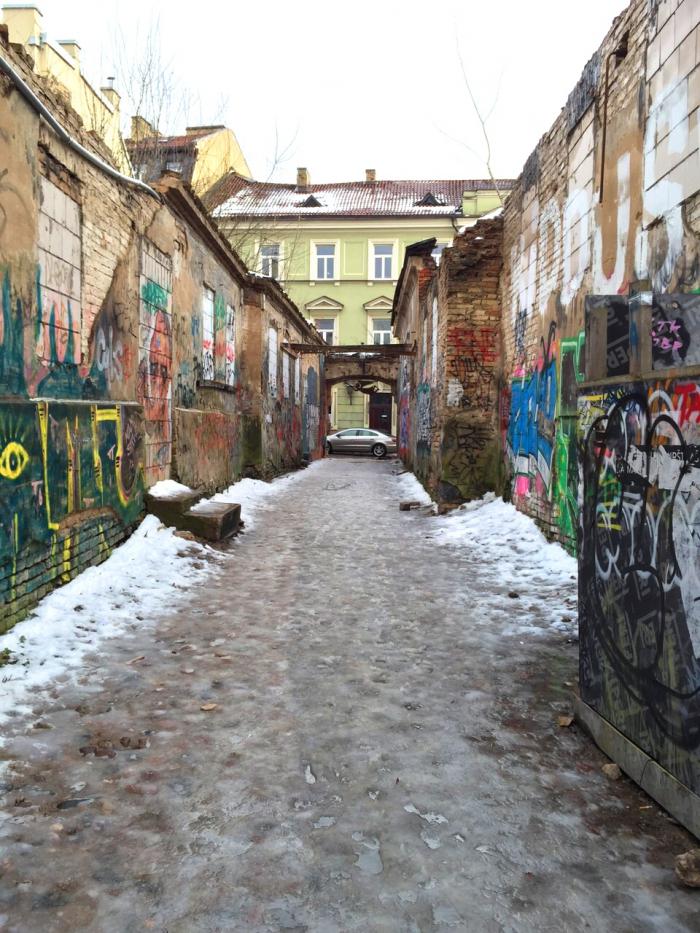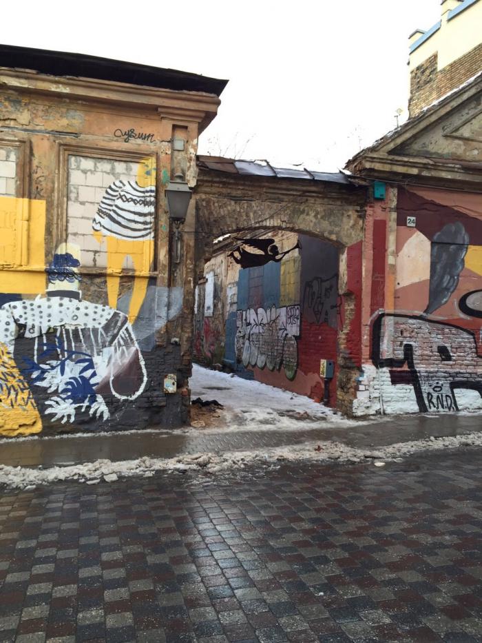 Затем отправились в Ужупис, небольшой район Вильнюса, частично расположенный в старом городе. Это район художников, творческих и креативных людей, они провозгласили Ужупис свободной республикой и имеют свою конституцию, особенно запомнился этот пункт: Кошка не обязала любить человека, но в трудной ситуации обязана придти ему на помощь.