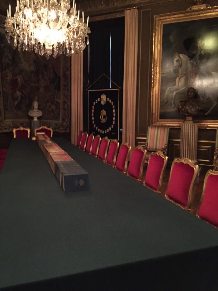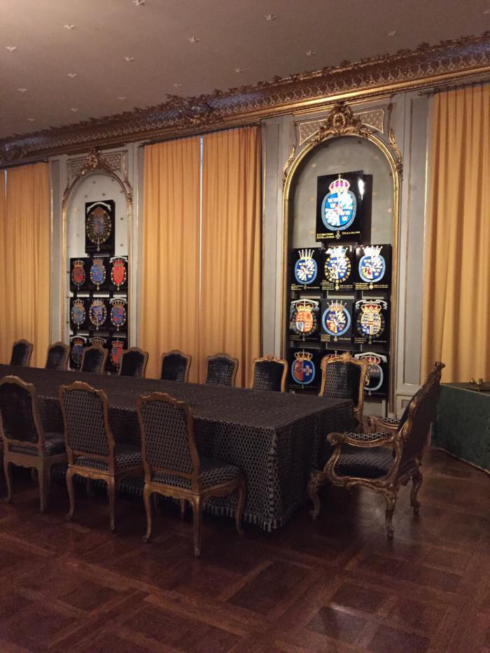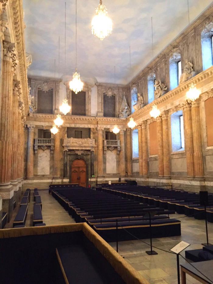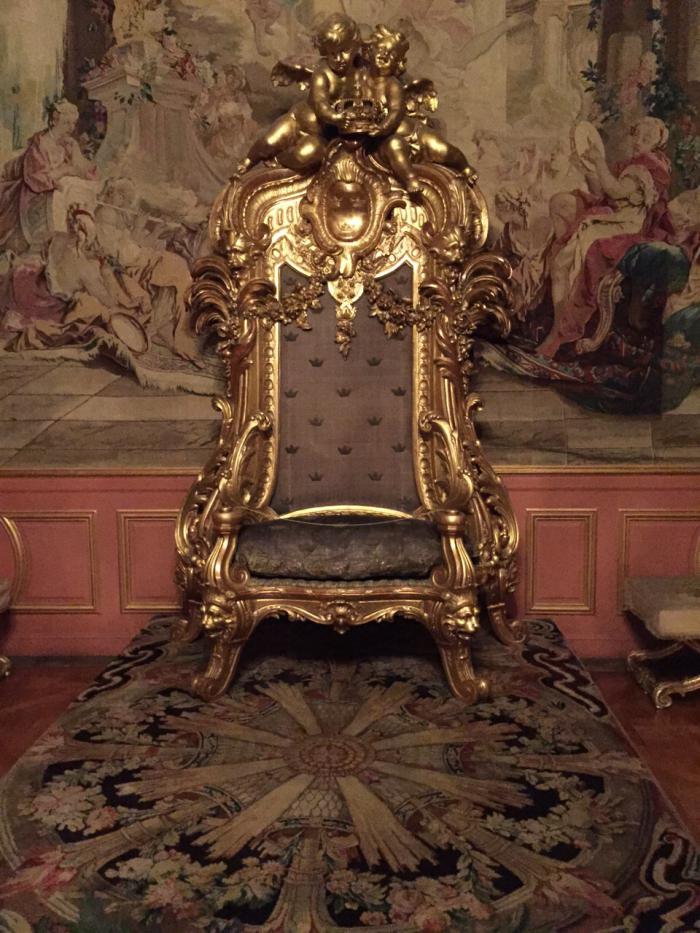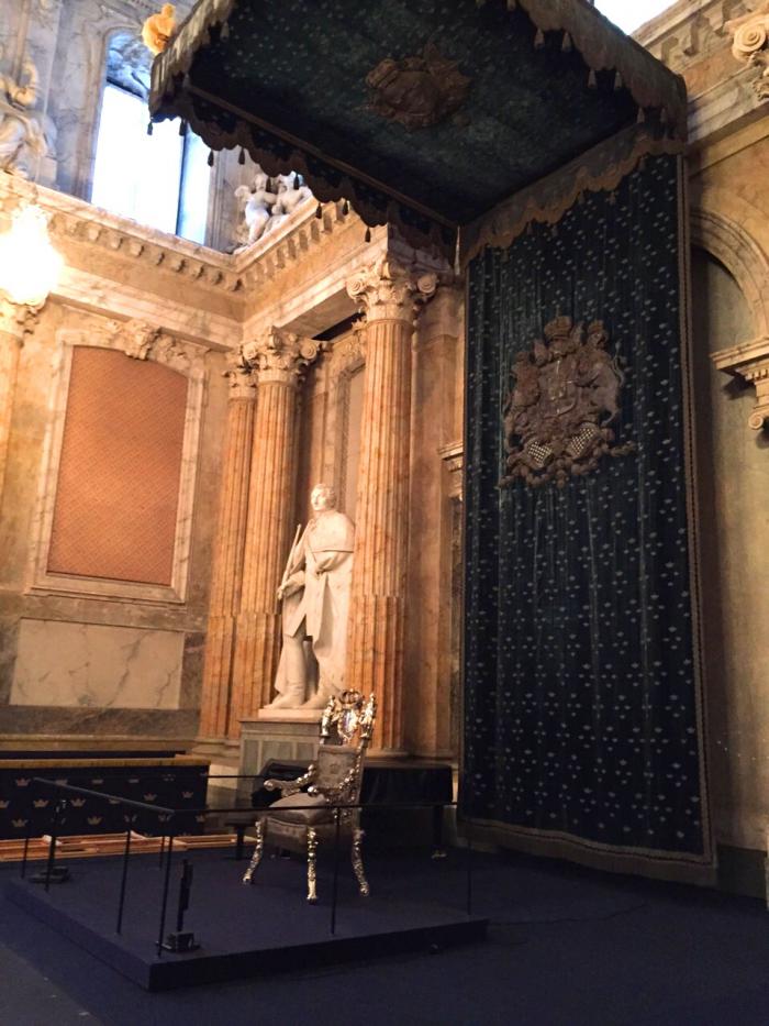 Конечно, после питерских дворцов внутренние убранства нас не впечатлили, все довольно серое и мрачное. Ужасно, что администрация Стокгольма не может выделить средств на отопление королевского дворца, это что, правда настолько дорого? Внутри холоднее, чем на улице, посетители ходят в куртках и шапках, персонал замороженный и заторможенный. Внутри полумрак, нет нормального освещения, а то мало того, что холодно, так еще и темно. Возможно плохим светом пытаются скрыть коррозию и ржавчину, т.к. реставрацию давно не делали…