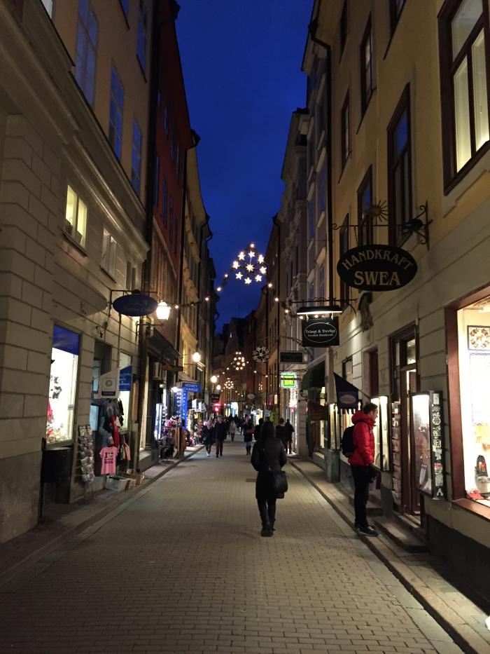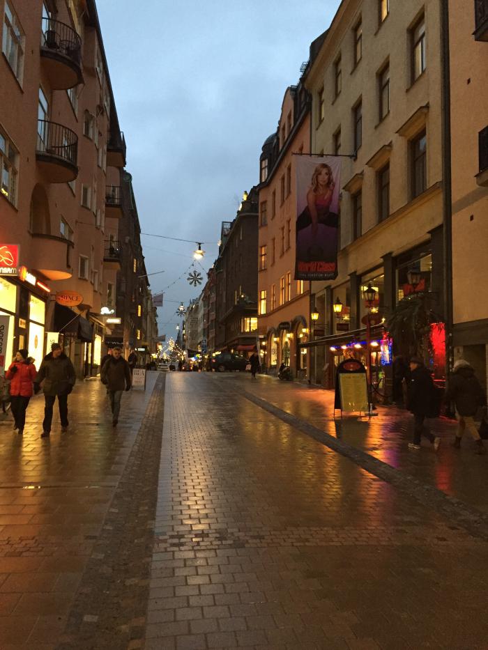 После покупки мы пошли гулять по городу, а потом по Gamla Stan (Старому городу). Темнеет в Швеции очень рано.