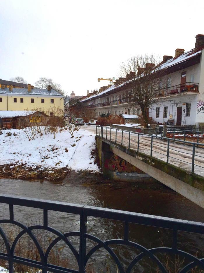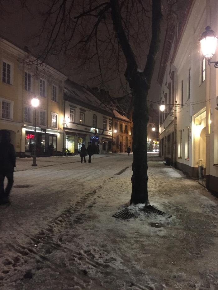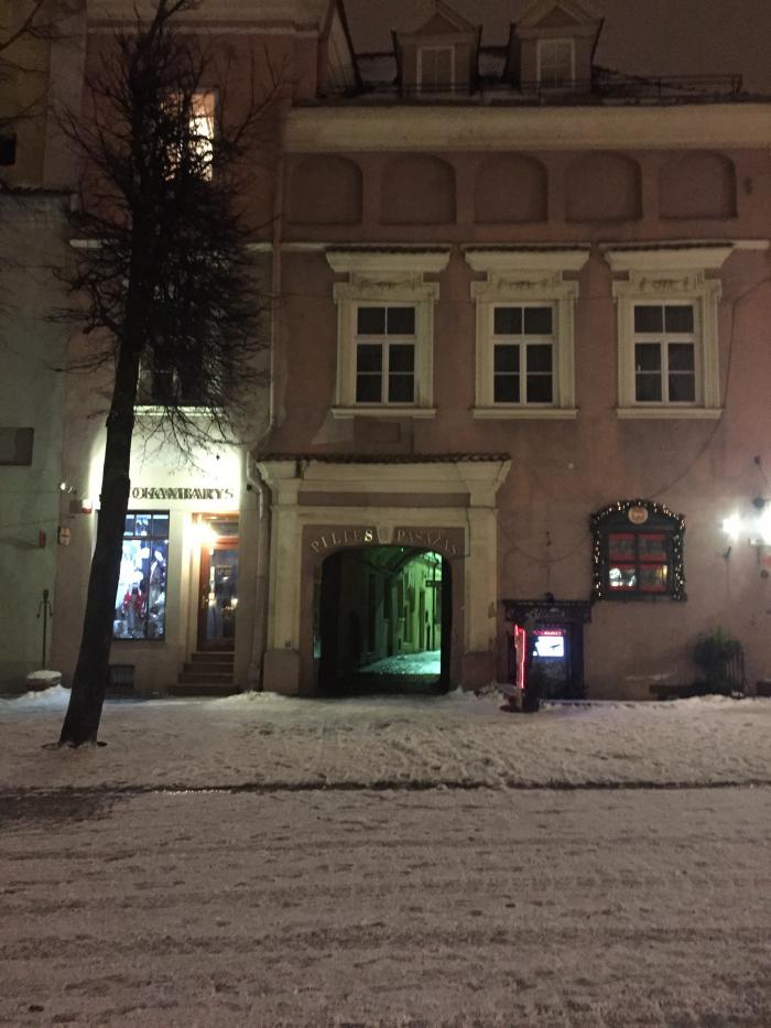 В городе была метель, но и это нас не остановило, одев дождевики, мы отправились гулять. Почти не фотографировали из-за сильного снега, после часа ходьбы, промокнув до нитки, зашли в кафе пробовать знаменитые литовские цеппелины. Это большие картофельные клецки с начинкой из мяса внутри, подаются со сметаной и шкварками. Вкусно и очень сытно. Дома обязательно приготовлю, подумала я, но пока руки так и не дошли…