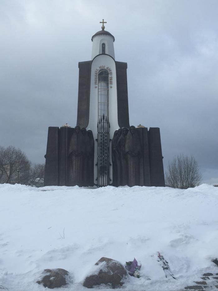 Под Смоленском остановились чтобы посетить Мемориальный комплекс «Катынь». Международный мемориал жертвам политических репрессий. Расположен в катынском лесу. На территории мемориала расположено военное кладбище, на котором похоронены 4241 польских офицер, расстрелянные весной 1940 года сотрудниками НКВД СССР. Также на территории катынского лесного массива захоронено около 6,5 тысяч жертв сталинских репрессий, казнённых в катынском лесу в 1930-х годах и 500 советских военнопленных, расстрелянных немецкими оккупационными войсками в 1943 году.