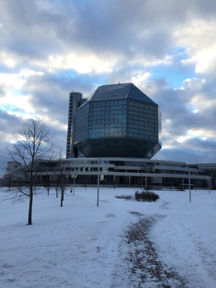 Читали много отзывов про Национальную библиотеку Белоруссии. Решили посмотреть своими глазами. Библиотека оказалась нестандартной, ромбообразное здание в 23 этажа высотой.