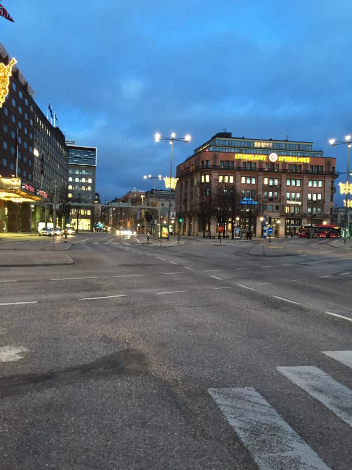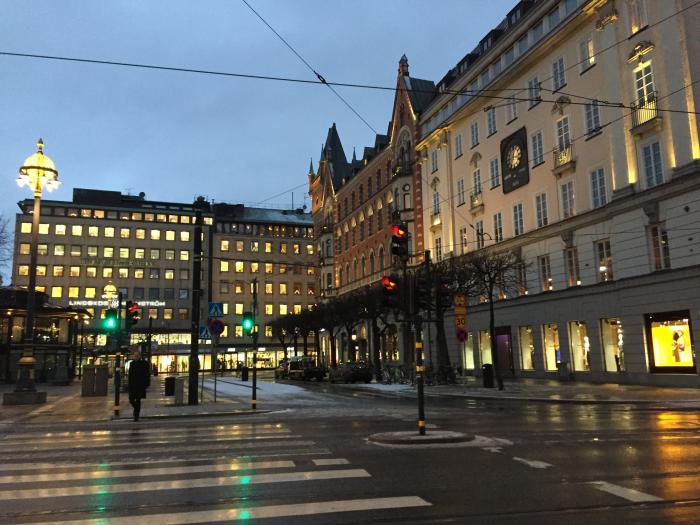 Вот и все, световой и рабочий день шведов закончился, больше идти некуда, идем пешком по вечернему городу в гостиницу.