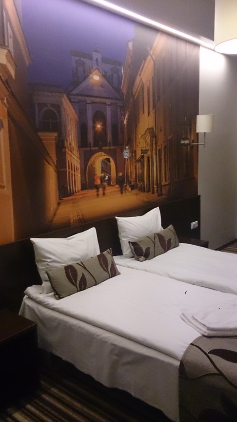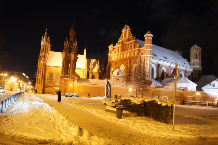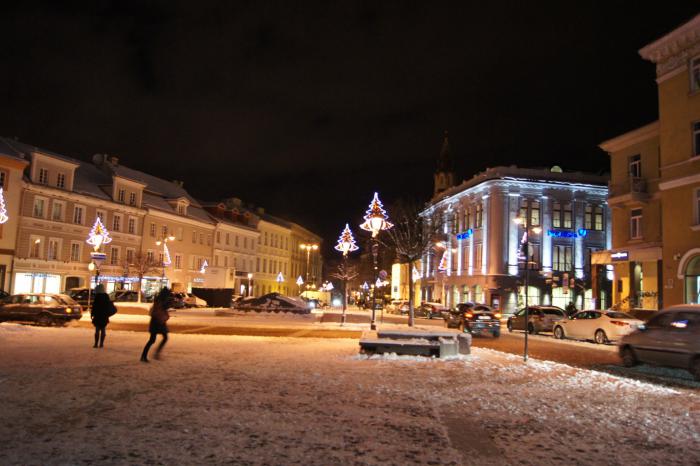 Погуляв, мы, наконец-то, выехали в Вильнюс. До города около 220 км. Погода ухудшилась, стемнело. Скорость движения опустилась до 60км/ч, а где-то и ещё ниже. На одной из трасс произошло крупное ДТП с перекрытием всех полос и образованием пробки, но мой штурман — Анечка (который, правда, иногда барахлил и нуждался в перепрошивке) быстро сориентировалась и нашла объездную дорогу. В Вильнюсе мы были через 3 часа. В 21:00 (или 20:00 по Литовскому). Сил хватило только на прогуляться до ближайшего торгового центра, там сесть в ресторанчик покушать и выпить вкусного сидра, потом зайти в маркет и купить поесть на утро, так завтрак в этом отеле включен не был. Для информации мы остановились в отеле . Это около 2.5 км пешком до проспекта Гидемина. Снег в Вильнюсе тоже неохотно убирают, прям, как в Москве.