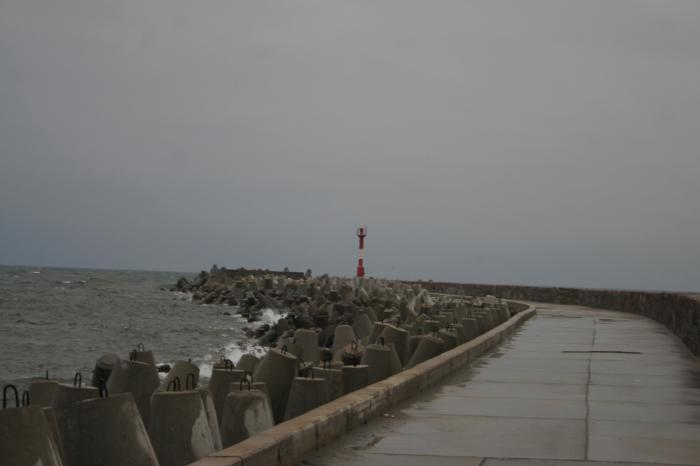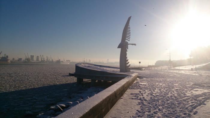 Хоть власти Калининграда нам подпортили сам Новый год, но мы не готовы были падать духом и грустить. Позавтракав в 12.00, было принято решение ехать на самый край страны, в город Балтийск. Расстояние около 50км, так как дороги довольно хорошие и движение в первых числах января не активное, то минут за 40 мы долетели. Нас встретил ураганный ветер ещё на трассе.
