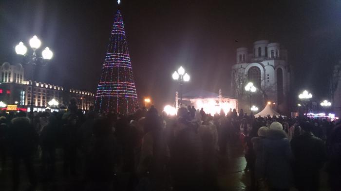 Зрелище жалкое. Отцеплена площадь, внутри 20-30 человек от силы, с шампанским на площадь нельзя, снаружи достаточно много «приезжих», как пишет гадоначальник, и ни черта не понятно когда наступило ровно 00:00. Салюты, фейерверки только где-то на окраинах или скромненько во дворах.