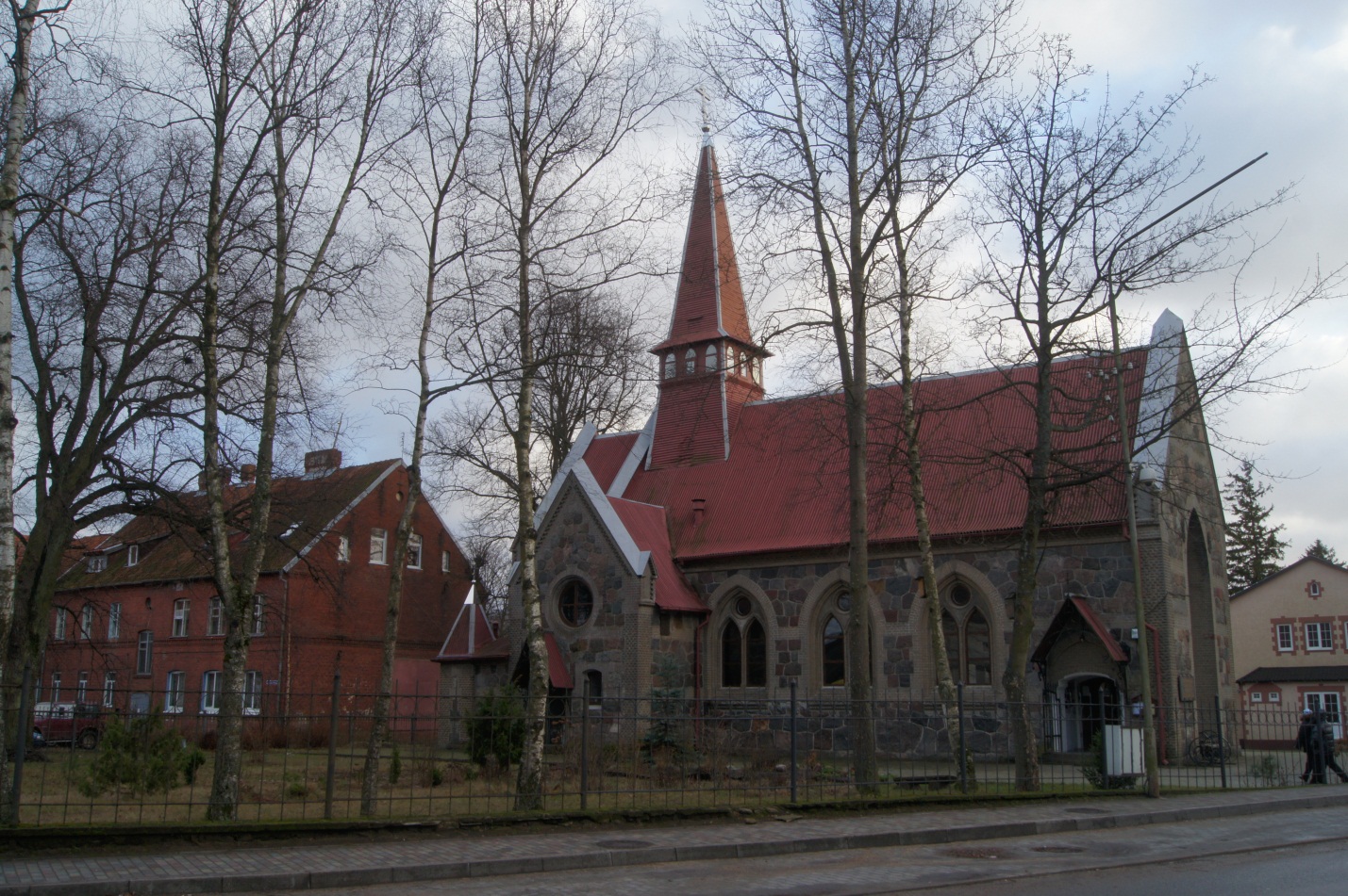 Посадив на хвост ребят, мы направились в посёлок Янтарный. Там располагается крупнейшее в мире месторождение янтаря. От Светлогорска до Янтарного около 20 км. Минут 25 и мы на месте. Остановились в центре города возле бывшей евангелистской кирхи (ныне храм Казанской иконы Божией Матери (1)), чтобы обсудить маршрут по городу с друзьями.