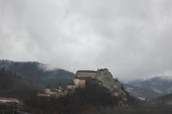 На высоченном утесе величественный замок. Прямо как из детских грез про рыцарей!!! Под замком городок — Оравский Подзамек. 5 домов :)
