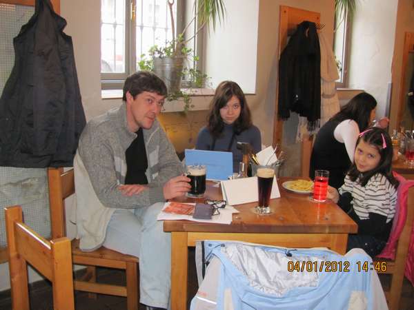 Походили, затарились сувенирами и конечно же Бехеровкой (очень уж муж ее уважает). Вернулись в отель, хотели оставить детей и поехать в Прагу, но стало лень. Дошли до метро, увидели пивной ресторан, зашли, очень уютная обстановка, посидели у бара, попили пива. Как сказал мой муж, со ста рублями в кафе в России я бы никогда не пошел, а в Чехии со ста кронами в кармане запросто!