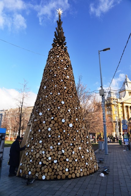 Символ этого Нового года в Будапеште – сложенная из чурбачков елка: