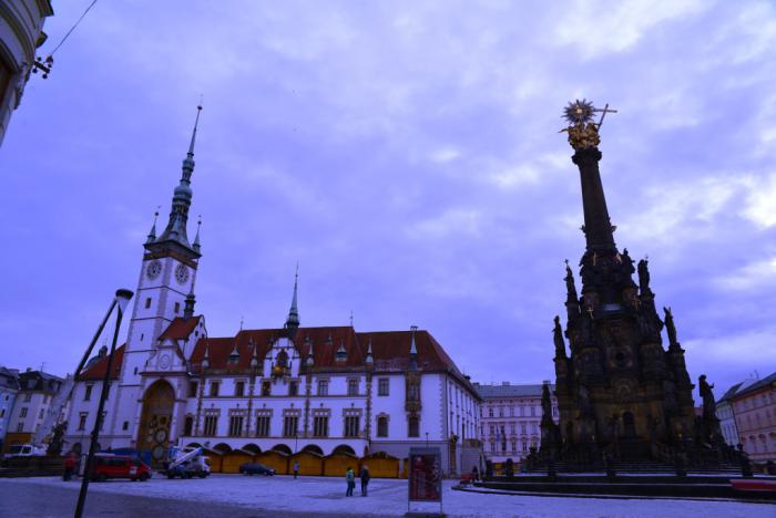 Заселившись вечером в отель при конном клубе — Penzion v jízdárně, мы с Андреем решили начать освоение «молодца-Оломоуца». Город встретил нас ледяным дождем и громадиной внесенной в список всемирного наследия ЮНЕСКО колонны Святой Троицы: