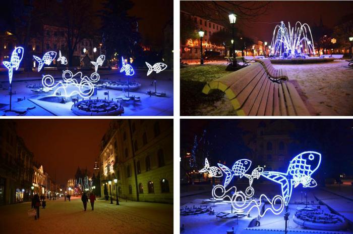 Во время транзита через Словакию погода из просто ветреной стала ветреной со снегом. В Кошице мы ввалились уже затемно (по их времени темнело в 16.15 – навигатор вырубался в ночной режим). Идти по Главной улице (Главная – имя собственное) было невозможно по причине залипания глаз от снега горизонтальной направленности. К счастью, за час, проведенный в кафе, стихия несколько поуспокилась и мы были вознаграждены видами заснеженного новогоднего города: