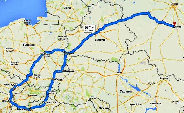 Отсюда сам собой нарисовался маршрут: Тула – Брест – Бяла-Подляска (1 ночь) — Замосць(1 ночь) – Жешув – Мишкольц(1 ночь) – Эгер – Будапешт (4 ночи) – Парндорф – Вена (1 ночь) – Оломоуц(1 ночь) – ночевка на границе – дом.