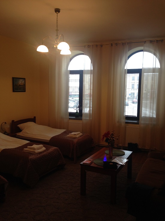 показался нам вполне приличным, с частной парковкой на территории, с завтраками и с хорошим видом из окна. Приветливый персонал, говорящий на русском. Когда приехали, машину поставили под крышу, так выбежал мужчина с ресепшена и сказал, что так не безопасно, т.к. могут падать сосульки с крыши и попросил переставить машину) Мелочь, а приятно) Сутки вышли нам 5500 р. номер на четверых.