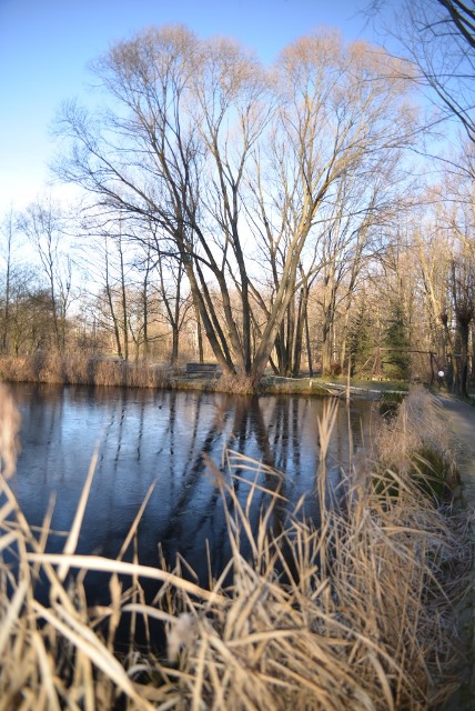 На подходе к замковому комплекту лес сменяется упорядоченностью парка с покрытым льдом фонтаном и статуями, оставленными на свободе без зимних футляров.