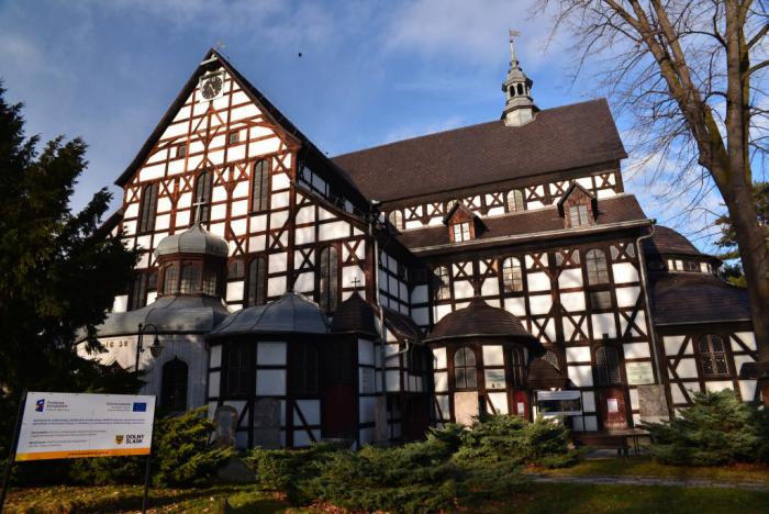 На европейских просторах она – крупнейшее сакральное деревянное строение, имеющее аналог только в польском же городе Явор. Построенные в честь долгожданного завершения Тридцатилетней войны, они отличались нехарактерными для храмов особенностями, продиктованными религиозными противоречиями между императором-католиком Фердинандом III Габсбургом, разрешившим строительство храмов, и лютеранами-силезцами, вознамерившимися эти храмы возвести».
