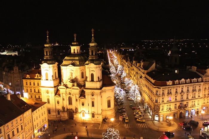 После ужина мы отправились гулять по вечерним пражским улицам, заглянули на Староместскую площадь, поднялись на башню Староместской ратуши, прошлись по Вацлавской площади и по Карлову мосту.
