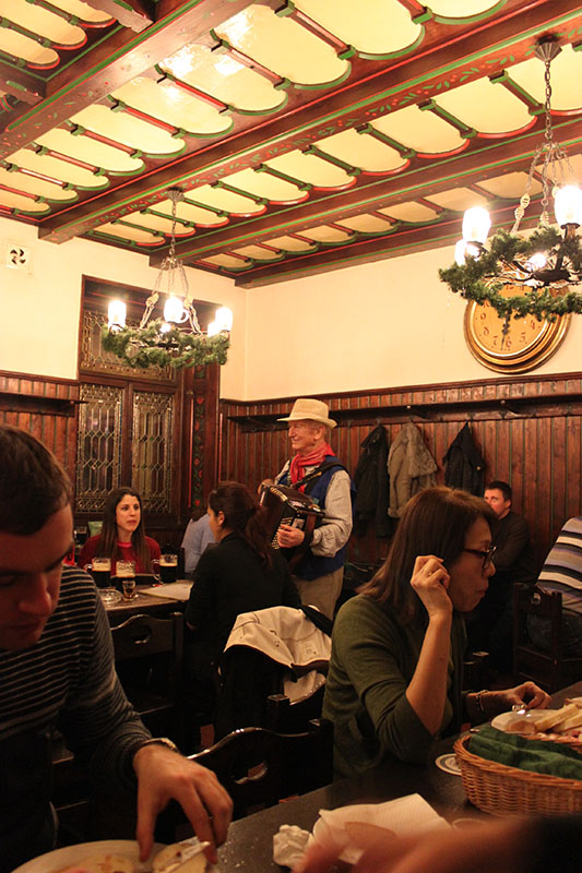 Для ужина мы выбрали проверенное заведение U Svejku (У Швейка), адрес Újezd 22. Его предпочитают посещать сами чехи, хотя и туристы часто приходят. В Швейке отличная еда и пиво. Цена кружки пива 70 руб. На столах лежит арахис и весят крендельки, если что-нибудь попробуете придётся заплатить.