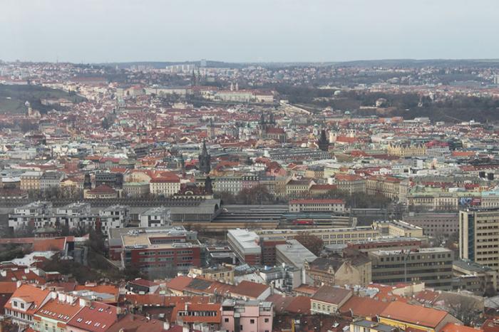 4 января. В этот день наш выбор пал на Жижковскую телебашню с младенцами. В прошлый раз мы не успели на неё взобраться и решили возместить это упущение. На метро мы доехали до станции Jiriho z Podebrad.