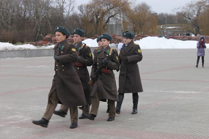 Смена почетного караула в Брестской крепости. Мне так было жаль девочек с бантиками, стойко стоящих на морозе.