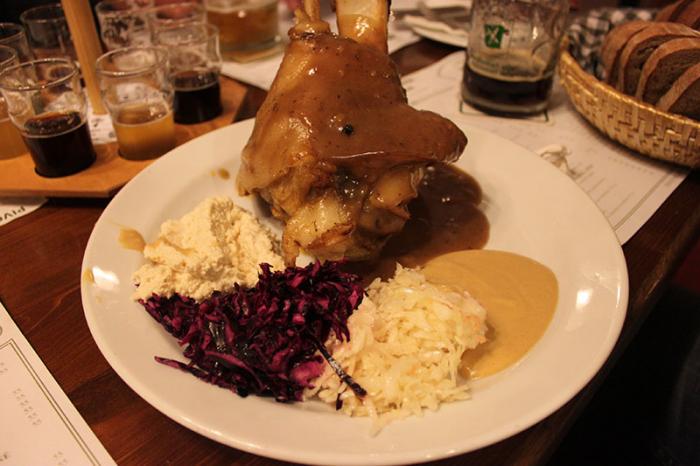 Но как и многие, мы пришли к мнению, что эту карусель интересно попробовать только один раз. В итоге мы выбрали традиционные светлое и темное пиво, заказали чесночный суп, выпрево колено, друзья заказали форель и стейк. Пиво вкусное, выпрево колено отвратительное, чесночный суп тоже не впечатлил, похож на бульон из кубиков, друзья своими блюдами остались довольны. Цены: карусель 240 руб, чесночный суп 55 руб, выпрево колено 500 руб, пиво 70 руб. Обслуживание тоже оставляет желать лучшего – официантка неприветливая и грубая, когда её о чем-то просили, могла огрызнуться, типа вас тут много, а я одна.