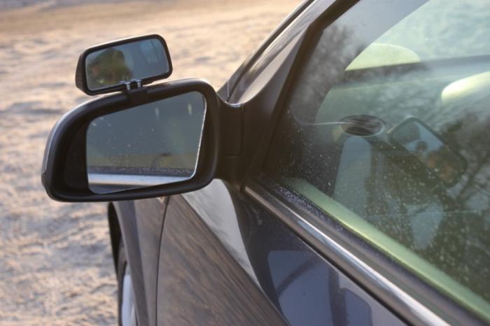 30 декабря. Ну вот у всех наступили выходные дни, чемоданы собраны и можно трогаться в путь. Перед дорожкой решили заехать на мойку, чтобы ехать на чистой машинке и бах…. мойщик разбил наружное левое водительское зеркало. А на дворе воскресенье, 30 декабря — магазины не работают. На наше счастье работал авторынок и мы обзавелись зеркалом для восьмёрки и приклеили его на двухсторонний скотч. Получилась вот такая конструкция: