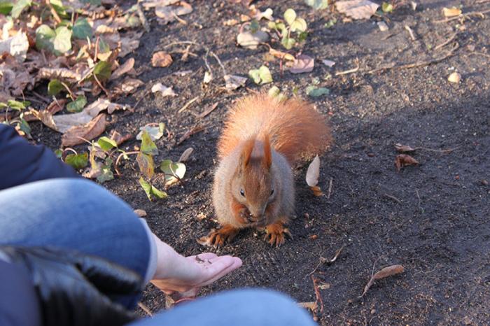 Местные обитательницы привыкли, что их подкармливают орешками и подходят к людям за гостинцами.