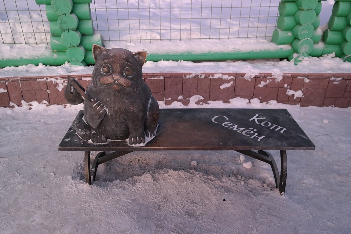Памятник коту Семёну (по легенде он потерялся в Москве и самостоятельно вернулся домой в Мурманск через 1,5 года):