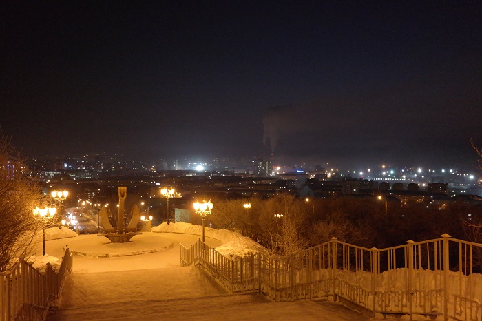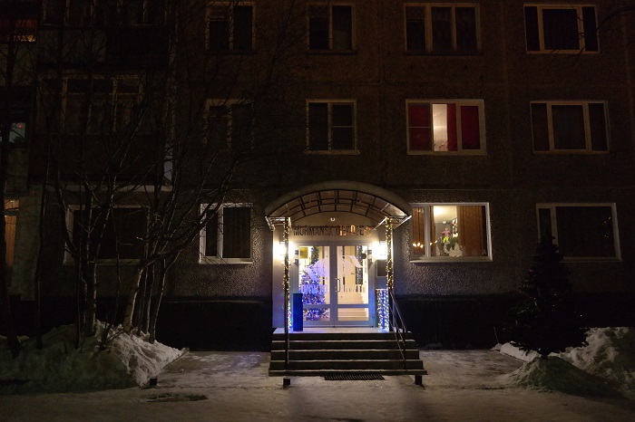 В Мурманск приехали часов в 15:00. Самый крупный город за Полярным кругом встретил нас температурой в -32. Гостиница на окраине, расположена на 1 этаже обычной 9-этажки.