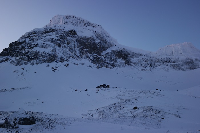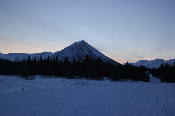 Опять, утром в Колвице -9, а в 70 км. по прямой, 160 км. по дороге, в Кировске -25. Но вообще, с погодой нам повезло, не было ветра и ясное небо.