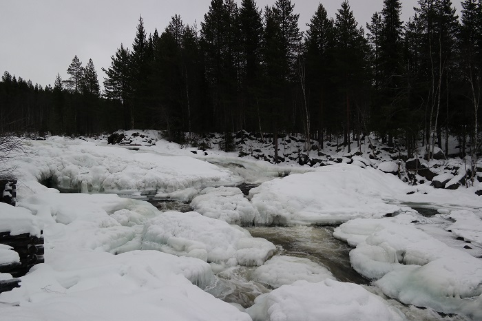 Выспавшись 1 января, отправились посмотреть на единственную Колвицкую достопримечательность, водопад «Чёрный падун» на реке Колвица.