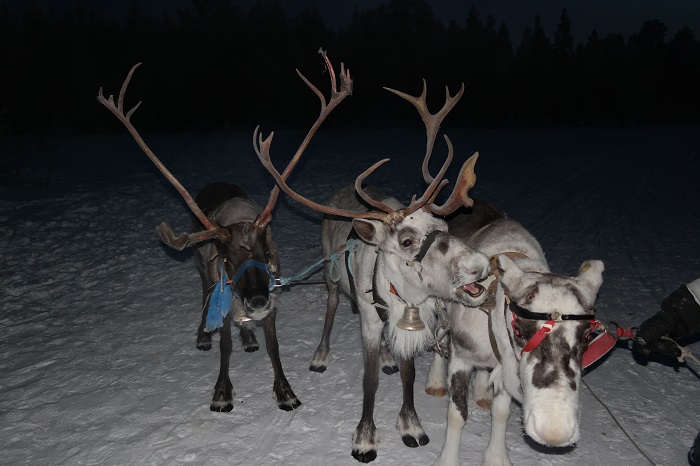 В программу посещения входило катание на собачьей и оленьей упряжках, общение с хаски и северными оленями, небольшая лекция о них и обед (уха из сёмги и картошка с олениной). Катали на собачках поочередно, примерно 800-1000 метров, остальные ехали на санках за снегоходом.
