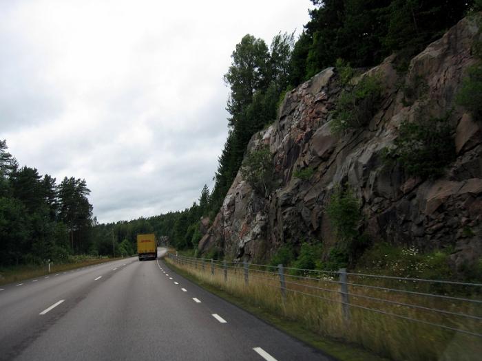 Ближе к границе с Норвегией ландшафт меняется. Вместо равнин то тут, то там появляются скалы, вместо двух полос в каждом направлении остается по одной, трафик становится более напряженным.
