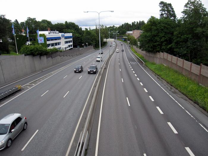 Швеция нас встретила проливным дождем и пронизывающим ветром. Температура за день не поднялась выше +15 градусов. А ветер был такой силы, что приходилось ловить машину при выезде на открытое пространство. Автомобильное знакомство со Стокгольмом было решено отложить на обратный путь, поэтому мы по указателям (которых в городе предостаточно) быстро выбрались на нужную нам трассу и помчали к Норвегии. Стоит сказать о трассе Е18. Если в Финляндии это практически везде автомагистраль с ограничением скорости 120, то по территории Швеции скоростное ограничение меняется от 110 до 90 в зависимости от участка. Что такое фуры — мы уже почти забыли. Все едут аккуратно, соблюдая скоростной режим, ну может быть на 5-10 км/ч больше. О камерах всегда сообщается заранее.